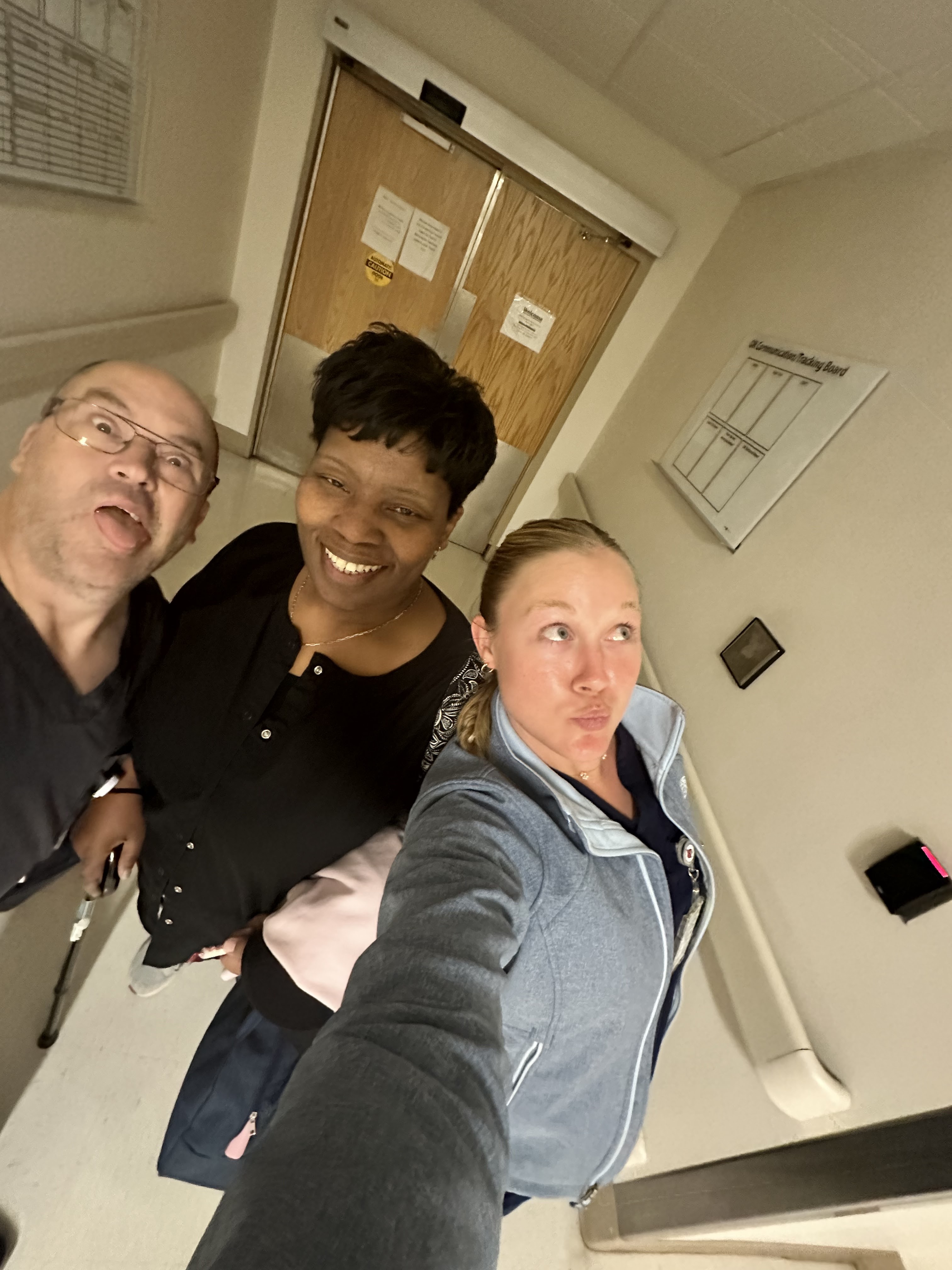 Here's a couple fun work selfies. Nothing crazy or out of the ordinary happened this week. Just a solid work week. I also started my new class this week in school. So far so good. It seems to have less busy work which is nice, but to compensate I have to write a couple good sized papers this term (one 5 pages and one 7 pages). Its a class all about nursing theories - Im so excited to actually learn advanced pharm and physiology. I feel like all these first few classes are common sense on how to care for people or how to be a leader and Im over it. But Im sure once the hard classes begin Ill be begging to have these easy classes again so I guess I better be grateful for now.